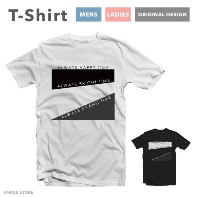 Tシャツ メンズ 半袖 おしゃれ プリント ブラック ホワイト グレー ALLWAYS BRIGHT TIME HAPPY オリジナル 文字 モノトーン