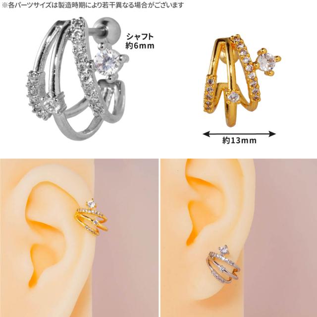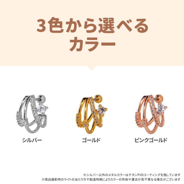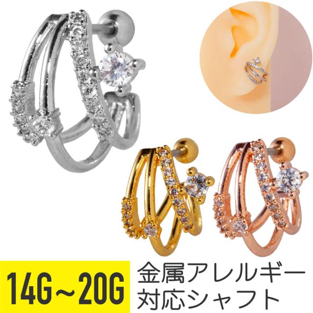 イヤーカフ風 3連 ライン ジュエル ストレートバーベル 14G 16G 18G 20G サージカルステンレス ヘリックス 軟骨ピアス ボディピアス
