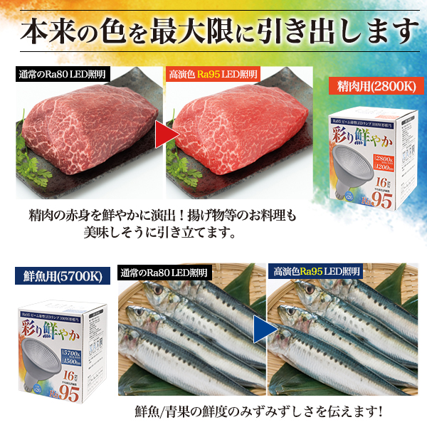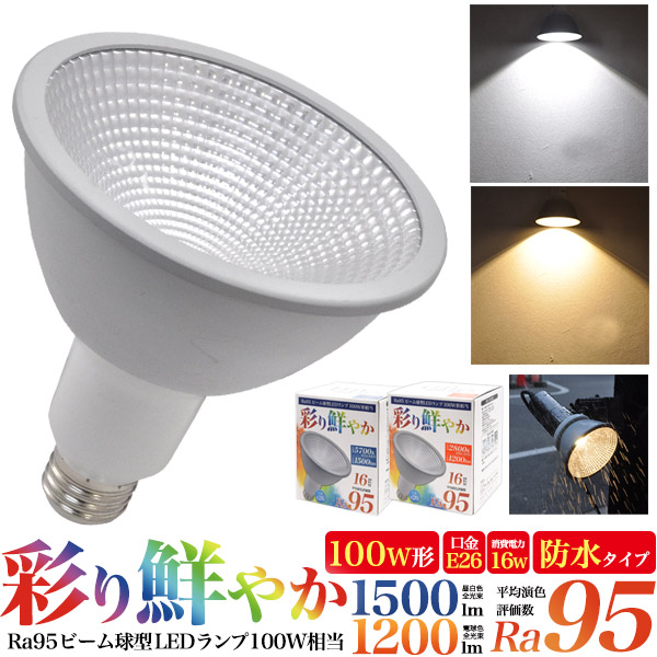 LED電球 100W形 ハロゲン形 E26 LEDライト 16W スポットライト本来の色を自然に再現 Ra95 昼白色 1500lm 電球色 1200lm 商品撮影 口金E26 e26 ハロゲン型 60W形相当 省エネ 電球 お店 店舗 エコ 節電 節税 青果店 鮮魚 精肉 店舗照明 電設資材 電気配線用品
