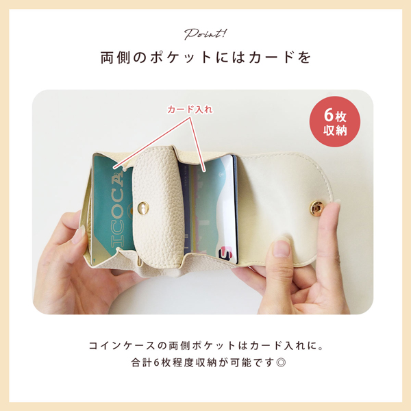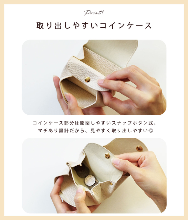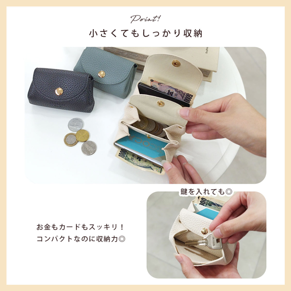 - お札をすべらせて入れるタイプが欲しかったので、ミニサイズで可愛くて気に入りましたが、学生証のようなカードが大きめだと入らなかったり難しい感じがしました。
