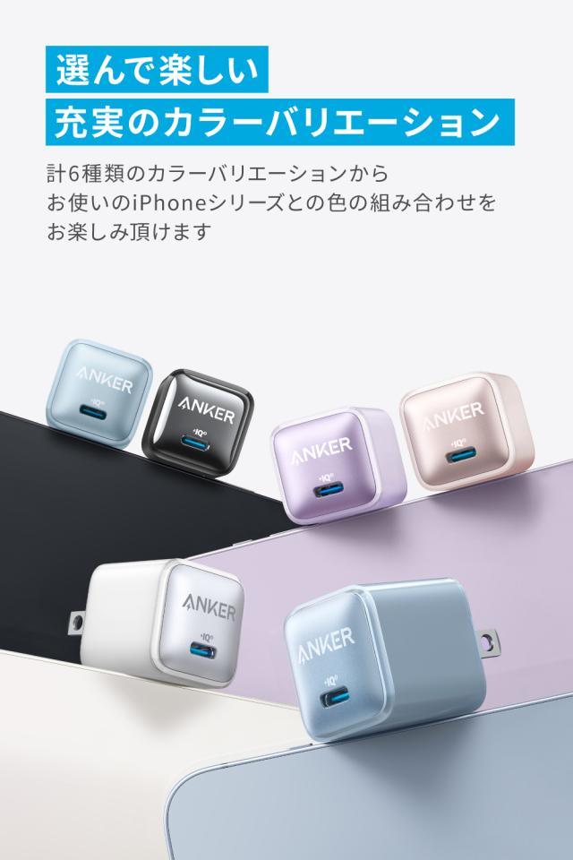 ・最新のiPhoneへ最大3倍速い充電スピード:USB PD対応の最大20W出力で、 iPhoneシリーズに最大3倍速く充電が可能です (一般的な5W出力の充電器でiPhone 14を0%から30%まで充電した場合との比較。Anker調べ) 。