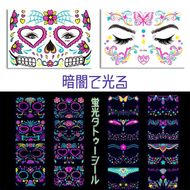 フェイスシール 蛍光 顔 シール 暗闇 発光 カラフル ハロウィンシール 仮装 ハロウィン ボディシール ラインストーン フェイスコーデ アクセサリー