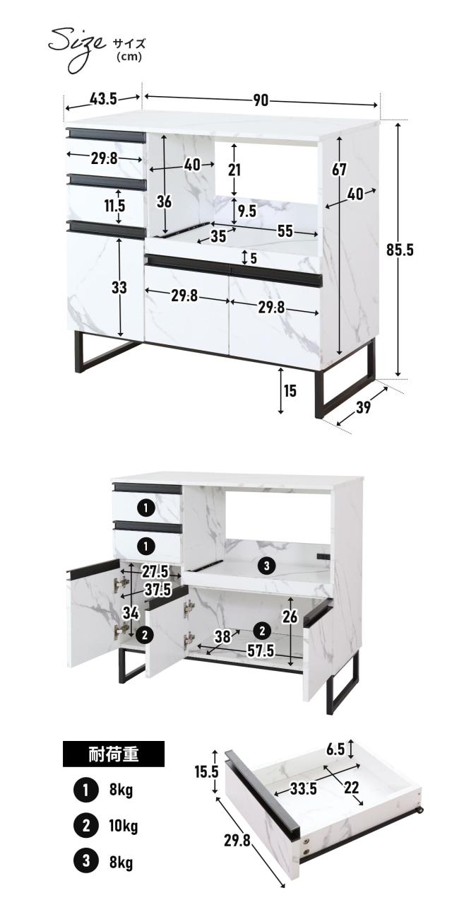 レンジ台 食器棚 キッチン収納 キッチンカウンター 幅90cm キッチンボード 収納 チェルシーロータイプ90 インテリア家具 おすすめ おしゃれ 北欧 big_ki プレゼント tm