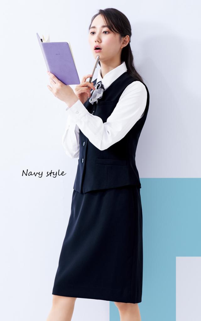 FOLK NUOVOSV3005/SC5000 美シルエットベスト/ラップキュロットスカート/ベーシック シンプルシルエット オールシーズン シワになりにくいストレッチ素材/ホームクリーニング/事務服オフィス制服/総裏/ブラック黒/ネイビー濃紺