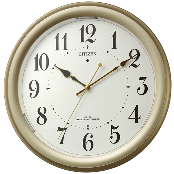 在庫あり 掛け時計 電波時計 夜光 暗所 自動 ライト 機能 ゴールド リズム RHYTHM