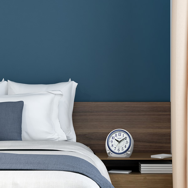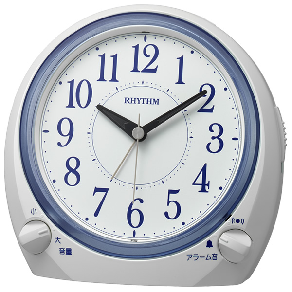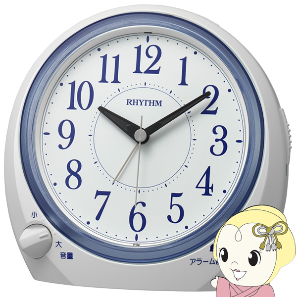 置き時計 目覚まし時計 アナログ 電子音 ベル音 2種類アラーム切換え可能 連続秒針 ライト付き 白 リズム RHYTHM