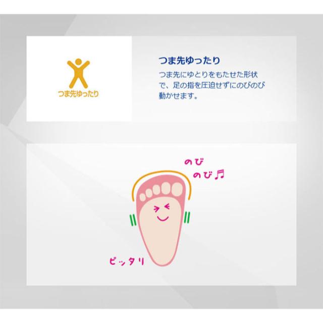 つま先にゆとりをもたせた形状で、足の指を圧迫せずにのびのび動かせます。