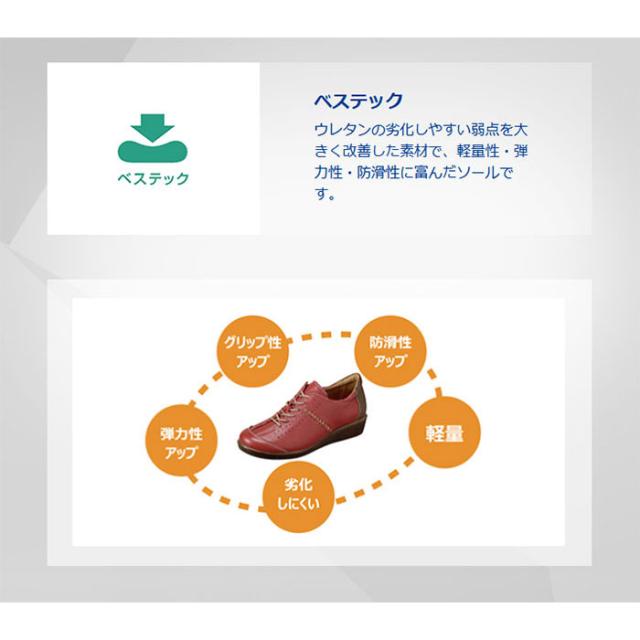 ウレタンの劣化しやすい弱点を大きく改善した素材で、軽量性・弾力性・防滑性に富んだソールです。