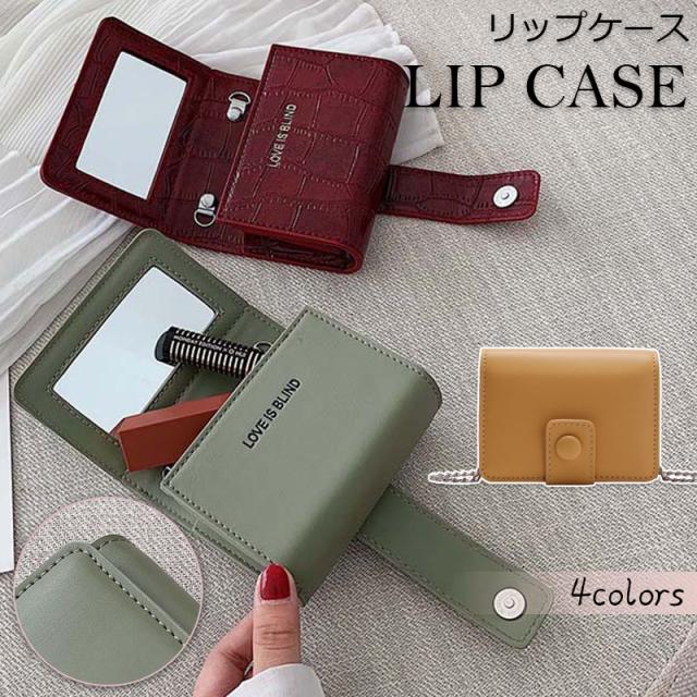 年末祭20%OFF リップケース ミラー付き 鏡 レディース 小物入れ 携帯用 リップ入れ 口紅ケース メイクポーチ 化粧品 小物入れ プレゼント
