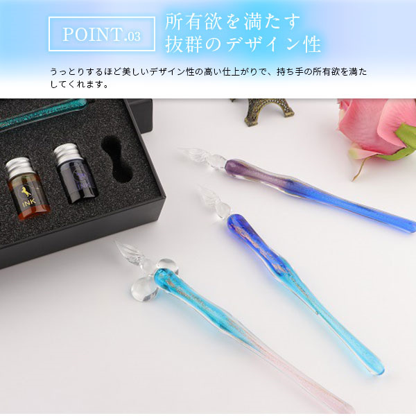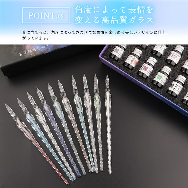 ガラスペン 硝子ペン 万年筆 つけペン プレゼント おしゃれ かわいい かっこいい インクセット ディップペン ペン置き 文房具