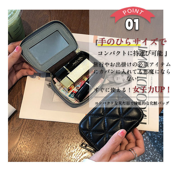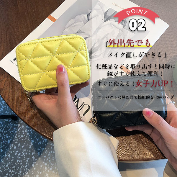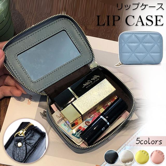 リップケース レディース ミラー付き キルティング リップ入れ 口紅ケース メイクポーチ 化粧品 コンパクト スリム 通勤 通学 かわいい おしゃれ