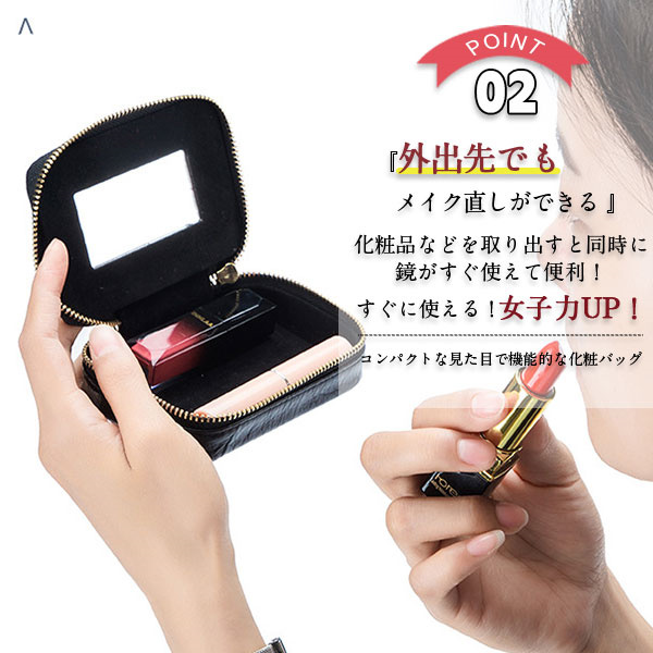 ポイント超超祭 リップケース ミラー付き 口紅ケース 収納ケース 鏡付き 携帯 コンパクト 化粧品収納 小物収納 ミニメイクポーチ 化粧ケース レザー スタッズ キル