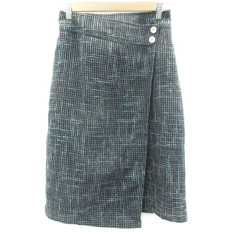 【中古】トッコ TOCCO フレアスカート ラップスカート風 ひざ丈 ツイード M ブラック 黒 /YM27 レディース