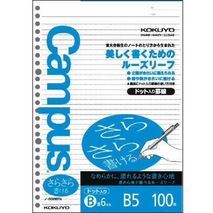 コクヨ KOKUYO キャンパスルーズリーフ さらさら書ける B罫ドットB5 100枚 試験勉強の整理用に、ドット入り罫線のルーズリーフ 書き心地も選べます。