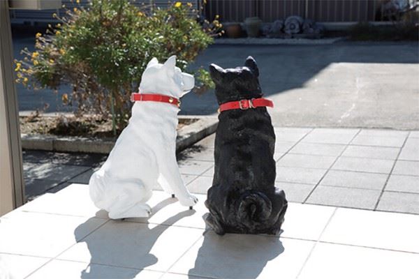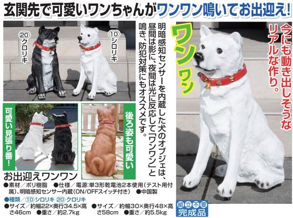 ●明暗感知センサーを内蔵した犬のオブジェは、昼間は影に、夜間は光に反応して「ワンワン」と鳴き、防犯対策にもオススメです。