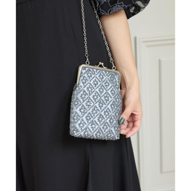 シルバーのがま口が上品な印象を与えてくれ、お呼ばれにもぴったりなアイテムです。