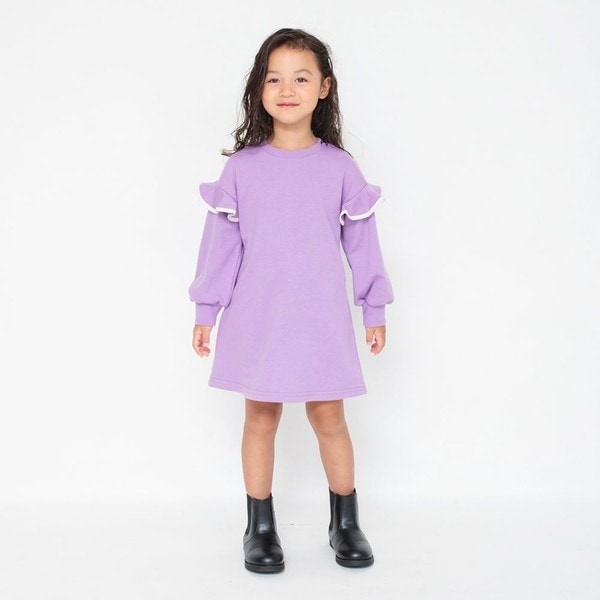 裏毛 袖フリルワンピース