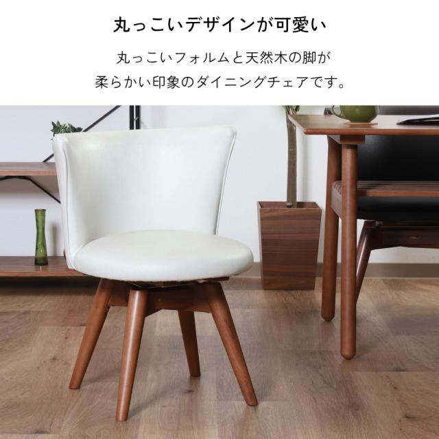 丸っこいフォルムでかわいらしく天然木の脚が柔らかい印象のダイニングチェアです。