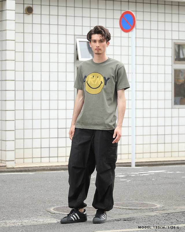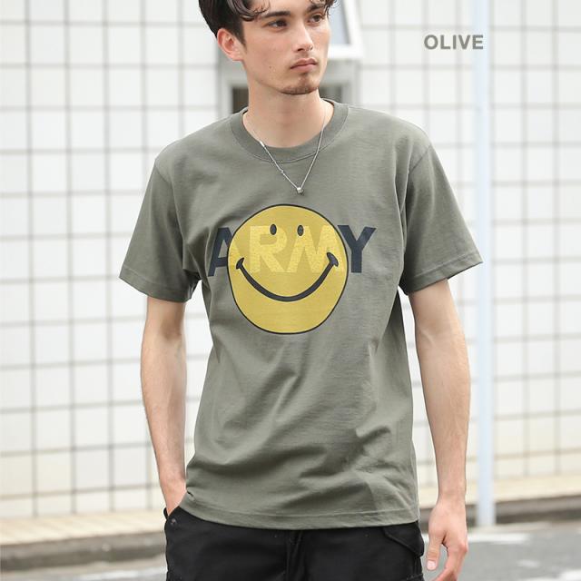 SMFC-042 ARMY SMILEY FACE TEE アーミースマイルフェイスTシャツ【T】|メンズ 半袖Tシャツ プリント 大きいサイズ トップス ミリタリー スマイルマーク カジュアル ファッション おしゃれ