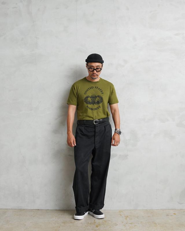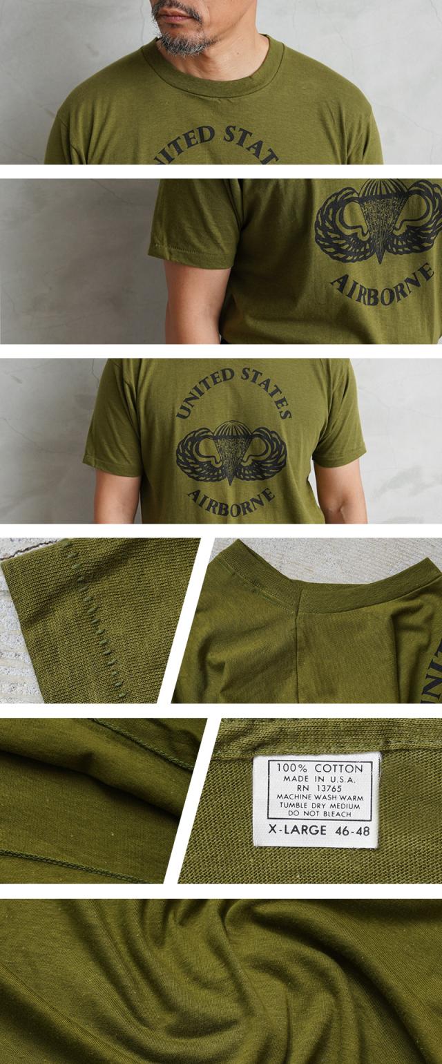 MADE IN USA デッドストック United States Army Airborne アメリカ陸軍空挺部隊 プリントTシャツ【Cx】【I】|メンズ 半袖Tシャツ 大きいサイズ ミリタリー ロゴ ステンシル カーキ 古着 ファッション おしゃれ