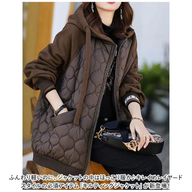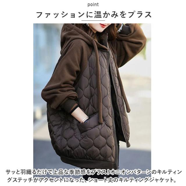 キルティングジャケット レディース 通販 ジャンバー ジャンパー 上着 普段使い アウター フード あったか 暖かい あたたかい 無地 防寒 ベーシック カジュアル シンプル 通勤 通学