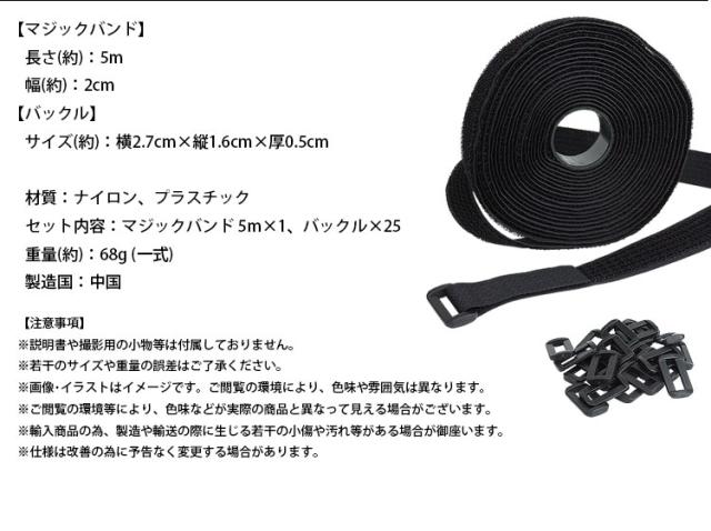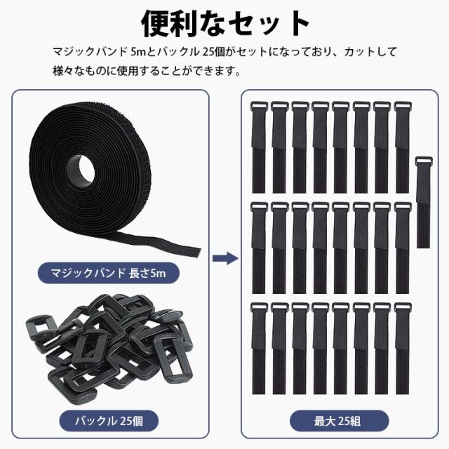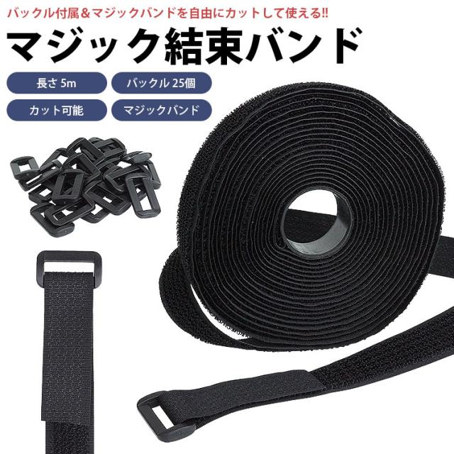 マジック 結束バンド バックル付属 長さ 5m バックル 25個 マジックバンド カット可能 ケーブルバンド 配線 整理整頓 荷物 小物 繰り返し PR-BUCMAGI【メール便 送料無料】