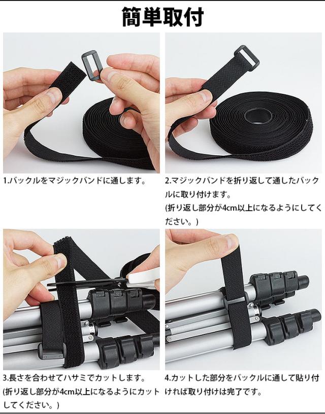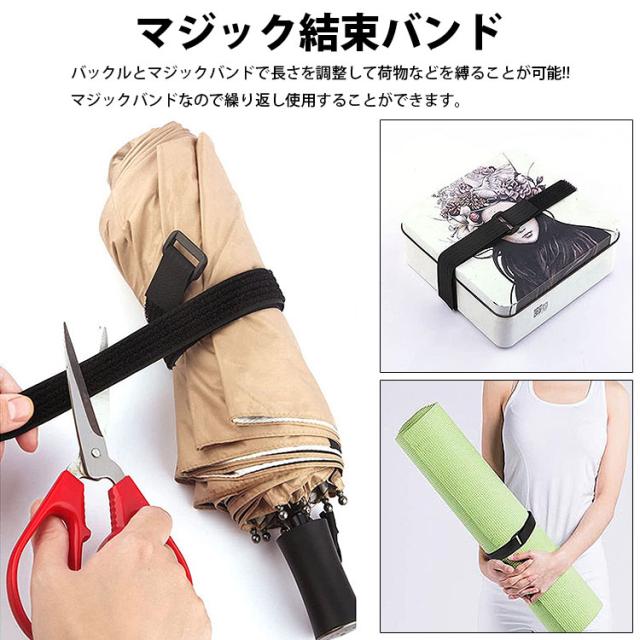 バックルとマジックバンドで長さを調整して荷物などを縛ることが可能!!