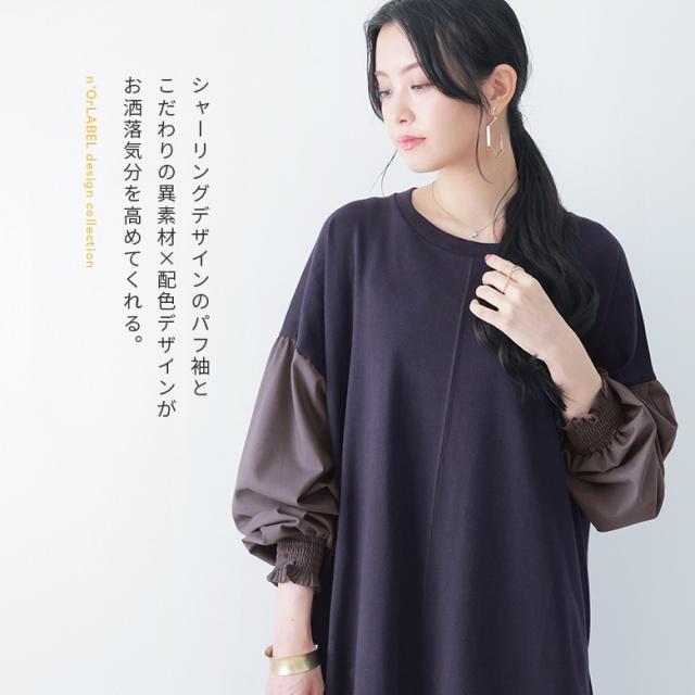 カットソー マキシワンピース カットワンピース クルーネック パフスリーブ ぽわん袖 ボリューム袖 袖コンシャス ドロップショルダー Aライン ギャザー 無地 異素材MIX ドッキング おうちで洗える 秋冬春 女子会 オフィス カジュアル 通勤 通学 お買い物 お出掛け 旅行 リゾート 大人女子 大人可愛い お洒落可愛い 上品 きれいめ レトロ クラシック モード ナチュラル ニュアンス ラフ Sサイズ Mサイズ Lサイズ LLサイズ 3Lサイズ XLサイズ フリーサイズ ぽっちゃり 体型カバー 大きいサイズ 10代 20代 30代 40代 50代 60代 低身長 高身長 n'OrLABEL ノア—ルレーベル ベージュ 紺 ネイビー イエロー 黄色 マスタード グレー 灰色 ブラック 黒 ブラウン 茶色 春秋冬 マキシ丈 シャーリング バルーンスリーブ ポケット付き 【ワンピース】[ID]wkn0280