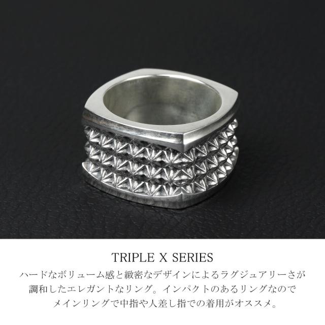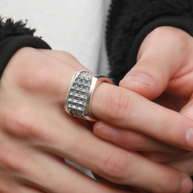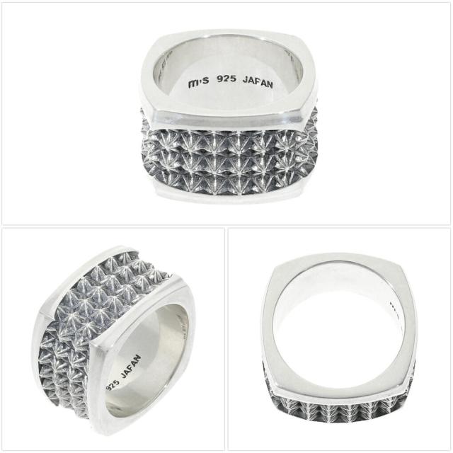M's collection エムズコレクション TRIPLE X スター 星 スタッズ スクエア リング 指輪 19号 シルバー925 シルバーアクセサリー ハード ワイルド