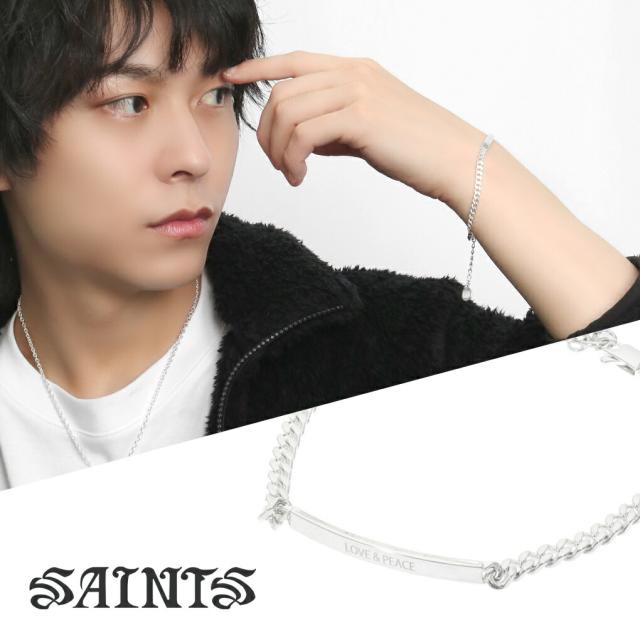 SAINTS セインツ LOVE&PEACE タグ プレート ブレスレット シルバー925 喜平チェーン シルバーアクセサリー シルバーブレスレット 英字 メッセージ