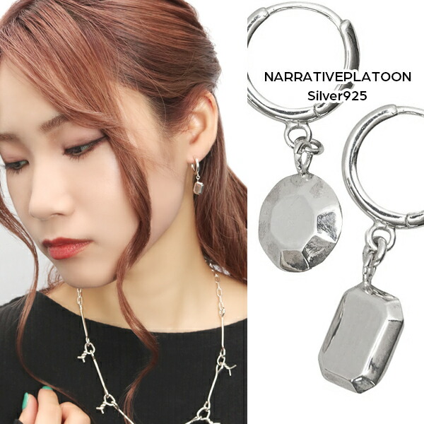 NARRATIVEPLATOON 揺れる 宝石 ピアス 1P 片耳用 シルバー925 銀 ナラティブプラトゥーン シルバー フープピアス リングピアス ジュエル