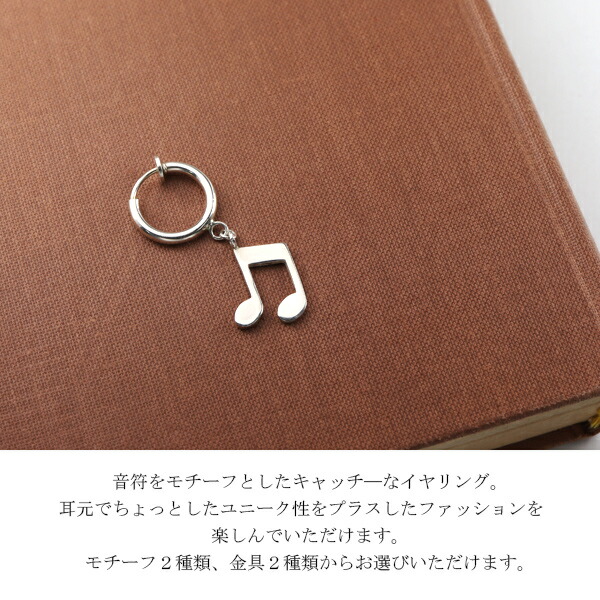 NARRATIVEPLATOON 揺れる 音符 イヤリング 1P 片耳用 シルバー925 銀 ナラティブプラトゥーン シルバー イヤークリップ ノンホールピアス 音楽 楽譜