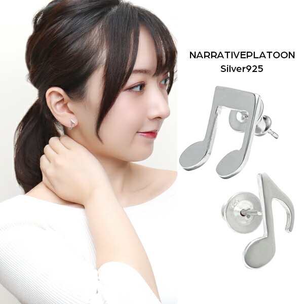 NARRATIVEPLATOON 音符 ピアス 1P 片耳用 シルバー925 銀 ナラティブプラトゥーン シルバー スタッドピアス 音楽 楽譜 チャーム 八分音符 さりげない