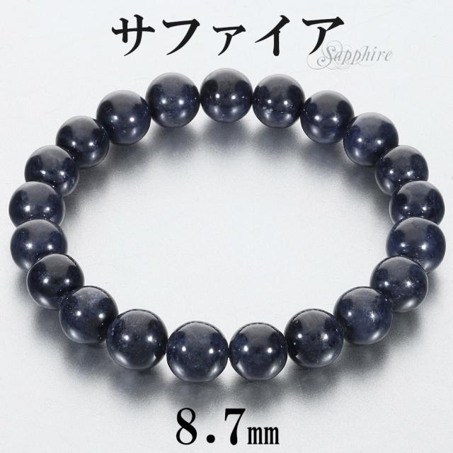 サファイア ブレスレット 8.7mm 17cm レディース M サイズ 誕生石 9月 天然石 パワーストーン サファイヤ 腕輪 ブレス 数珠 サファイアブレスレット