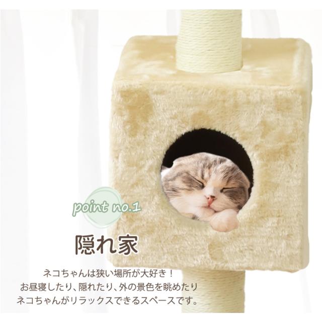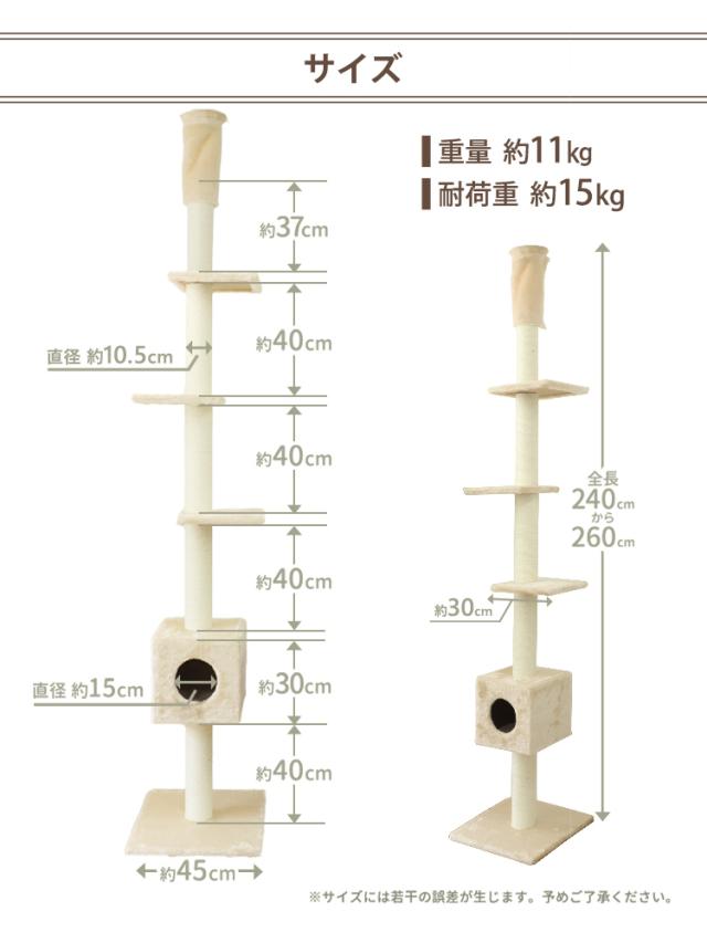 キャットタワー 突っ張り スリム 爪とぎ ポール 隠れ家付き 省スペース 240〜260cm 全2色 麻 シニア キャットファニチャー ネコちゃんタワー キャットポール ペット つっぱり式 おしゃれ ネコタワー 猫 大型猫 シニア 木登りタワー おしゃれ