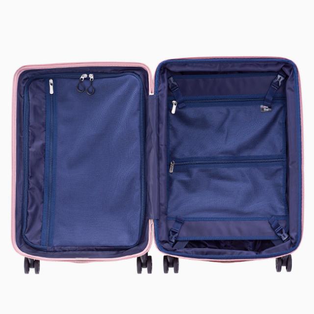 | 大好評のFiLpakeシリーズに荷物の出し入れがしやすいトップオープンタイプが仲間入り! ボディは軽量で破損しにくいポリカーボネイト100%を使用しています。抜群の走行安定性・旋回性を誇る大径50mmダブルホイールキャスターが凹凸のある路面で実力を発揮するうえに、前輪部には簡単に操作可能なストッパー機能を搭載。電車内や坂道などで便利です。前輪側にキャスターを取り付けているため、本体を斜めに倒せばストッパー機能を解除することなく後輪で移動ができます。 また「ALI-6060TP-22W」は、荷物が増えた際に便利な拡張機能付き。51Lから60Lへ増加します。 重さもわずか約3.7kgと軽量です。ファスナーは安心のYKK社製テープを採用しています。 |