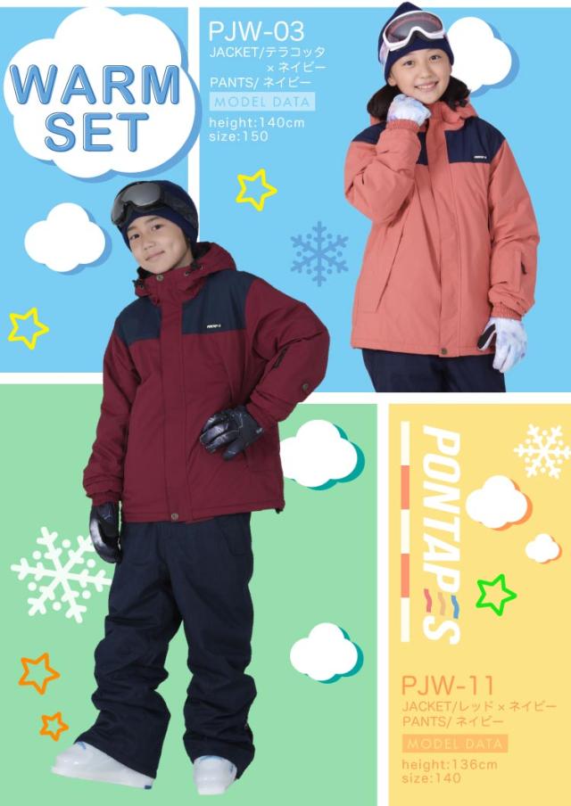 スノーボードウェア キッズ 型落ち 上下セット 100~150cm ジュニア こども用 スノーウェア スキーウェア 男の子 女の子 通学 防寒 雪遊び PJS-108NW SWJ2 SA02