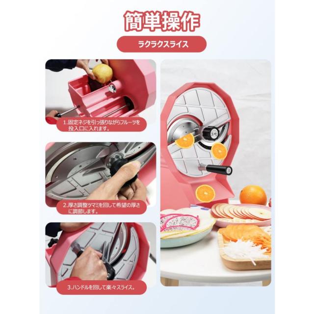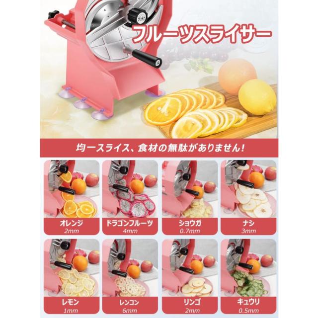 【新しい切断方法】果物を入れて、ハンドルを握って回すだけで、フルーツスライスができます。遊び心で厨房の作業が楽しめます