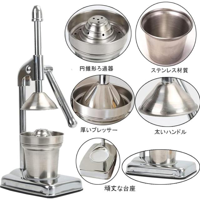 ハンド ジューサー ,絞り器,果汁絞り器 ,レモン絞り器,手動式 ジューサー, ステンレス製 ハンドブレンダー 果汁 手作り ジュース絞り器 フレッシュジューサ