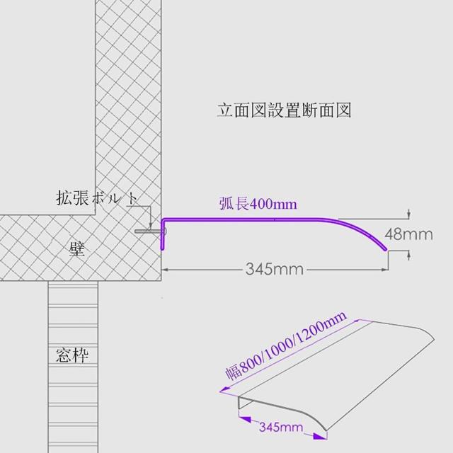 ▲耐候性:キャノピーは太陽光線を効果的に遮断すると同時に、12を超える台風や地震などの悪天候による被害にも耐えることができます,ドアや窓を紫外線によるダメージから永続的に保護できます