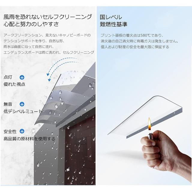 屋根庇 ひさし雨よけ、 屋根庇 住宅庇 雨よけ 透明PCボードパティオ キャノピー 雨よけ?日よけに UV 雨 雪 日光家具保護庭園ドア 窓屋根後付け 拡張可能簡単設置