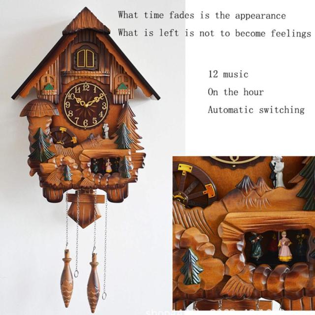 本物の鳩時計:時が来れば、カッコウは素晴らしい職人技で作られます。カッコウの鳴き声、音楽の音、動く鳥の物体が現れ、ダンサーは軽く踊ります。