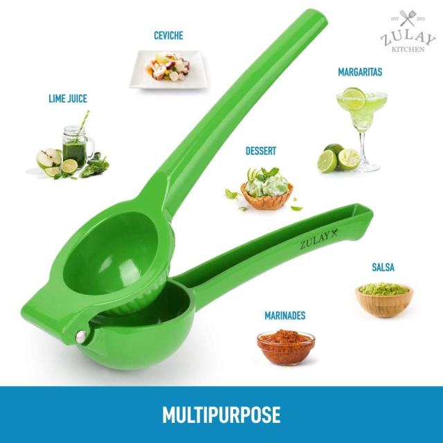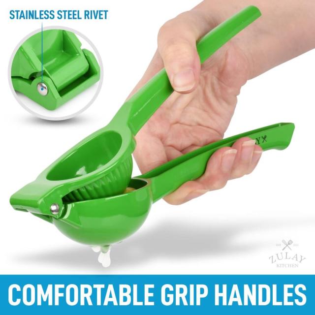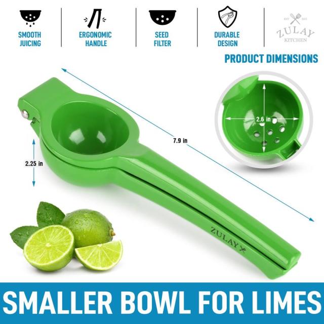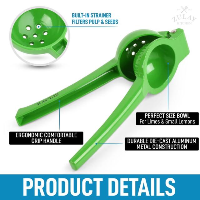 プレミアム品質のメタルレモン絞り器、シトラスジューサー、可能な限り多くのジュースを抽出するための手動プレス - ライムグリーン
