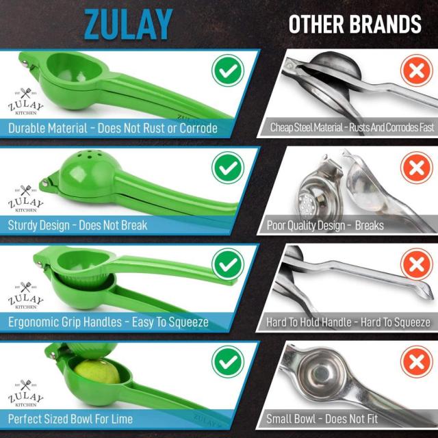 ライムを最大限に活用:このZulay Kitchenのアルミニウム製ライム絞り器は、ライムから果肉と種子を除いたすべての果汁を取り除き、絞りにくい硬いライムであっても半分を基本的に乾燥させます。ホームバーやキッチンの装飾を邪魔するかさばって掃除が難しいジューサーはもう必要ありません。この柑橘類プレスは手のひらサイズで持ち運びに便利です。あなたがシェフであっても、贅沢に搾りたい人であっても、数秒で新鮮なライムジュースを一杯飲むことができます。