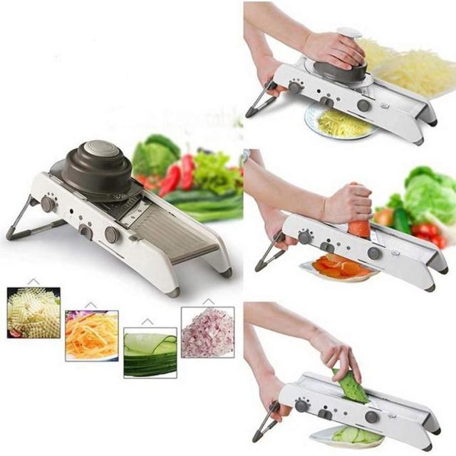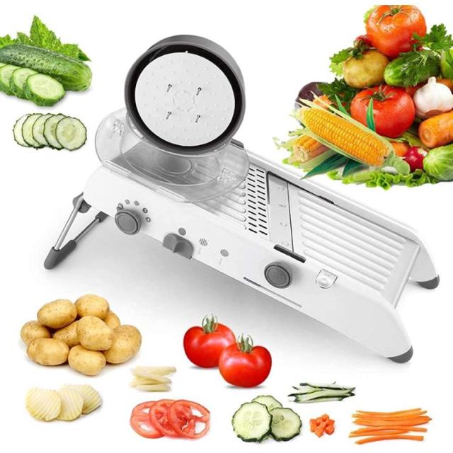 調整可能なマンドリンスライサー、ワッフルフライカッター用ブレード付き多機能ステンレス鋼野菜スライサー、オニオンポテトカッター (グレー)