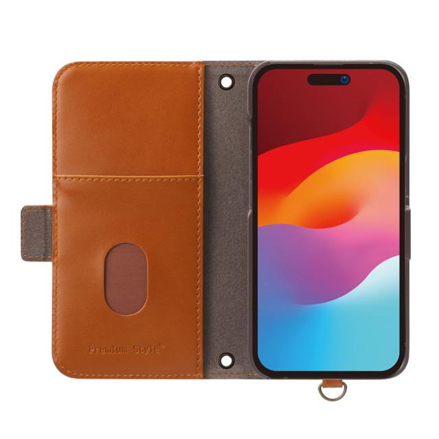 風合いの良い上質なPUレザー素材を使用したiPhone 15用 フリップカバーです。