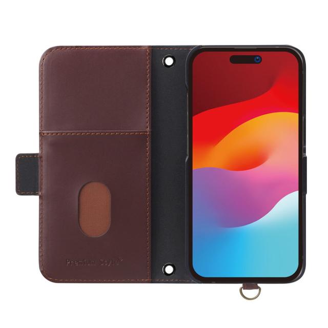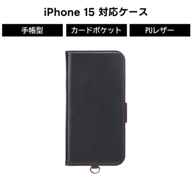 風合いの良い上質なPUレザー素材を使用したiPhone 15用 フリップカバーです。