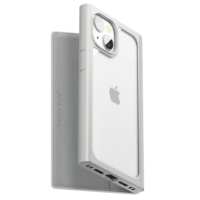 iPhone15 手帳型ケース ガラス スクエア iPhoneケース かわいい 背面クリア クリアケースおしゃれ スマホケース カバー 手帳型ケース スマホカバー アイフォン15 アイフォン グレー ソフト ハード
