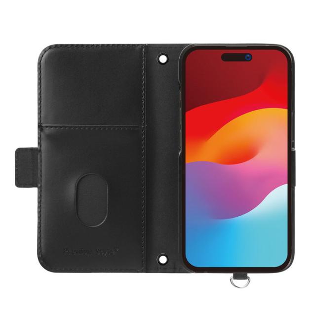 風合いの良い上質なPUレザー素材を使用したiPhone 15 Pro用 フリップカバーです。