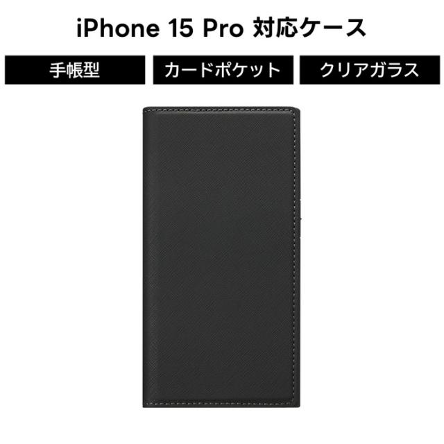 iPhone15 Pro 手帳型ケース ガラス スクエア iPhoneケース 背面クリア クリアケースおしゃれ スマホケース カバー スマホカバー アイフォン15 アイフォン ブラック ソフト ハード 透明 カード収納 ポケット付き 人気 耐衝撃 おしゃれ キャラクター大人可愛い ギフト
